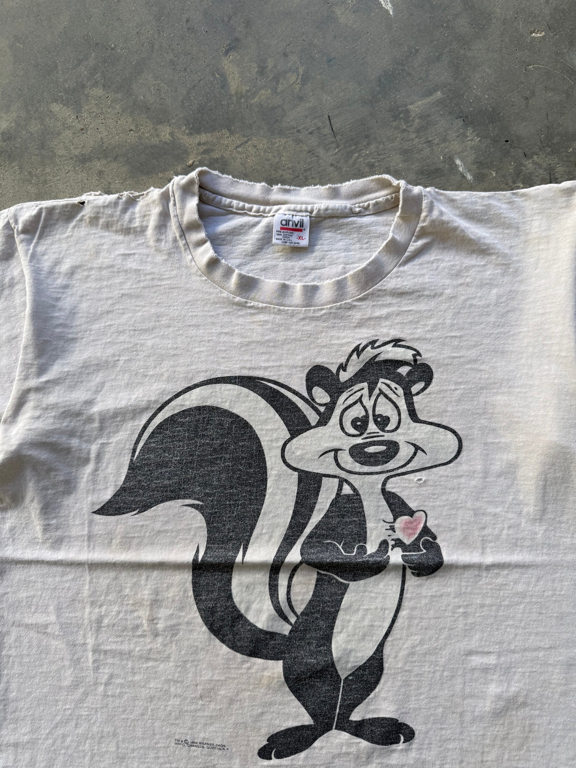 90’s “PEPE LE PEW” THRASHED FADED TEE XL